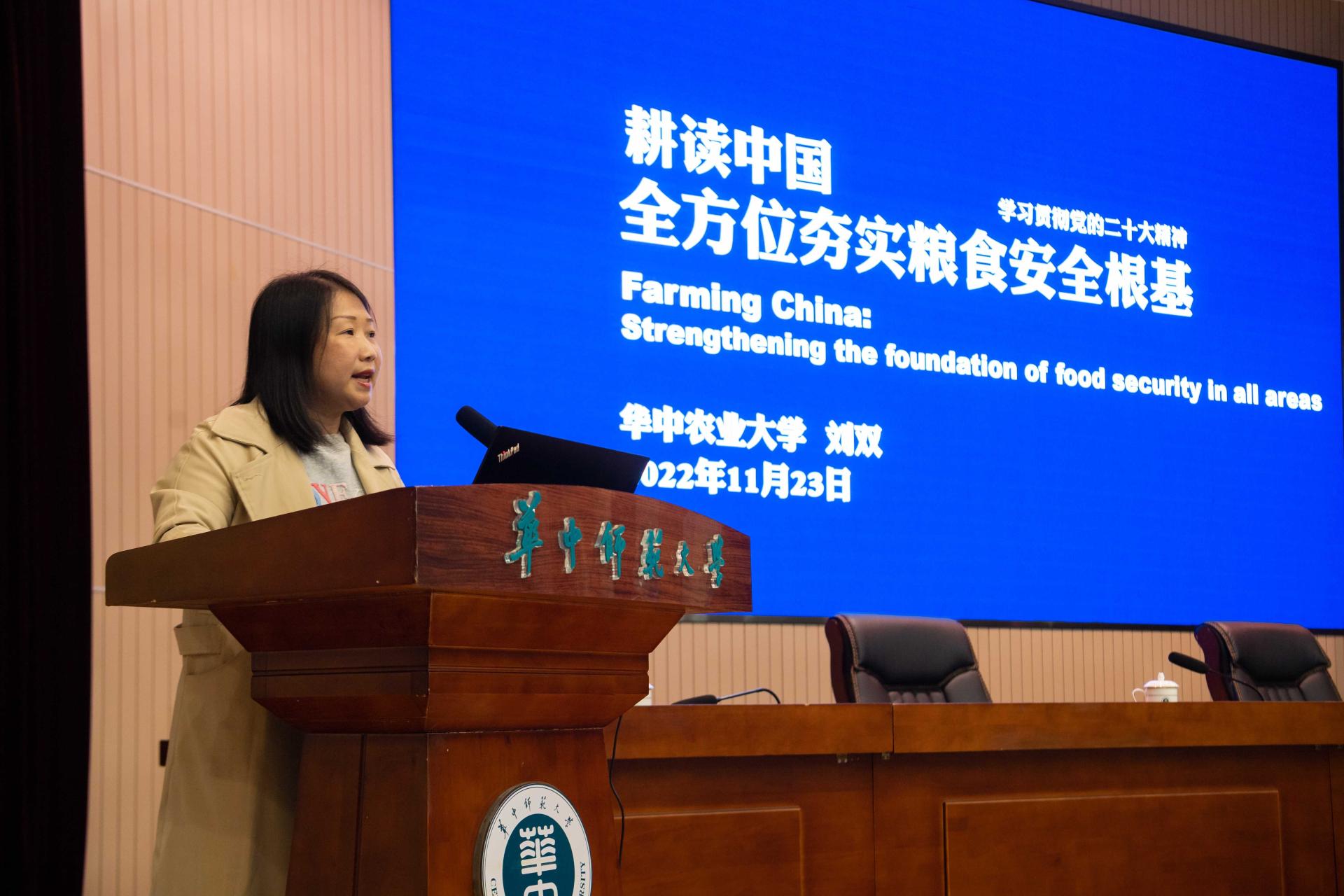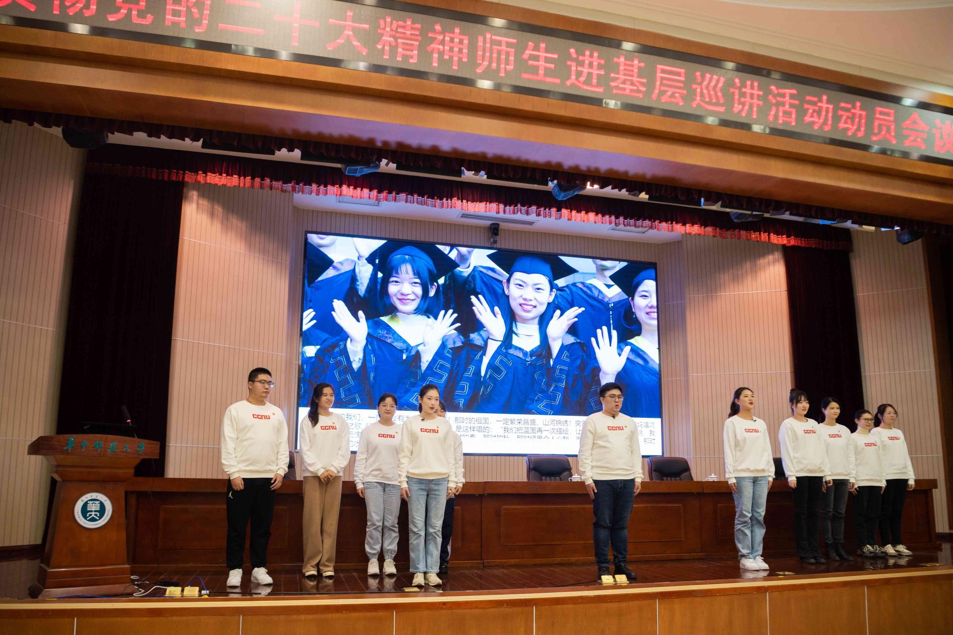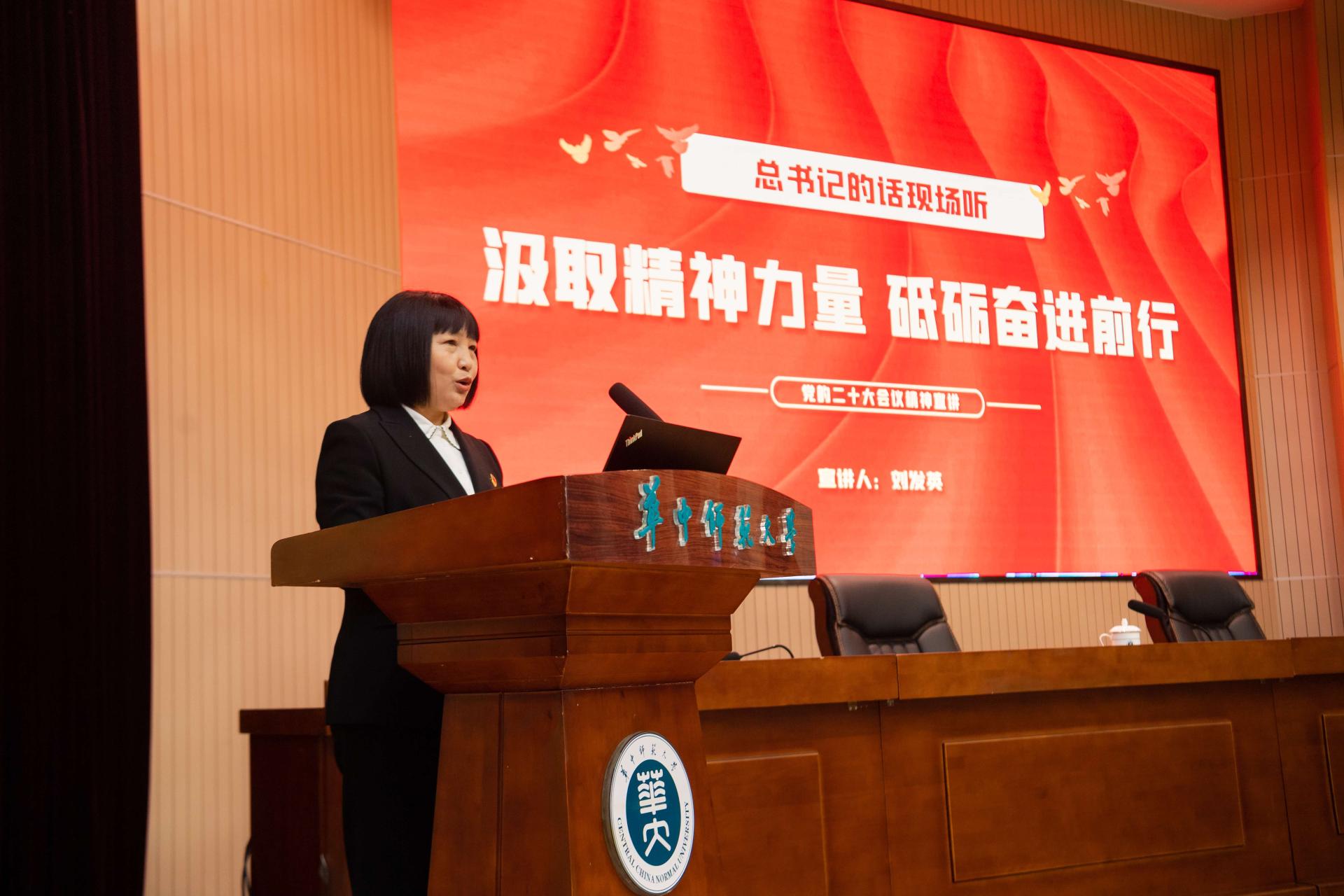 会上,党的二十大代表、长阳县花坪小学副校长刘发英,华中农业大学马克思主义学院副教授刘双,武汉大学水利水电学院2022级水工结构工程专业博士生唐嘉博,我校优秀学生宣讲小分队,为与会代表展示了宣讲内容。