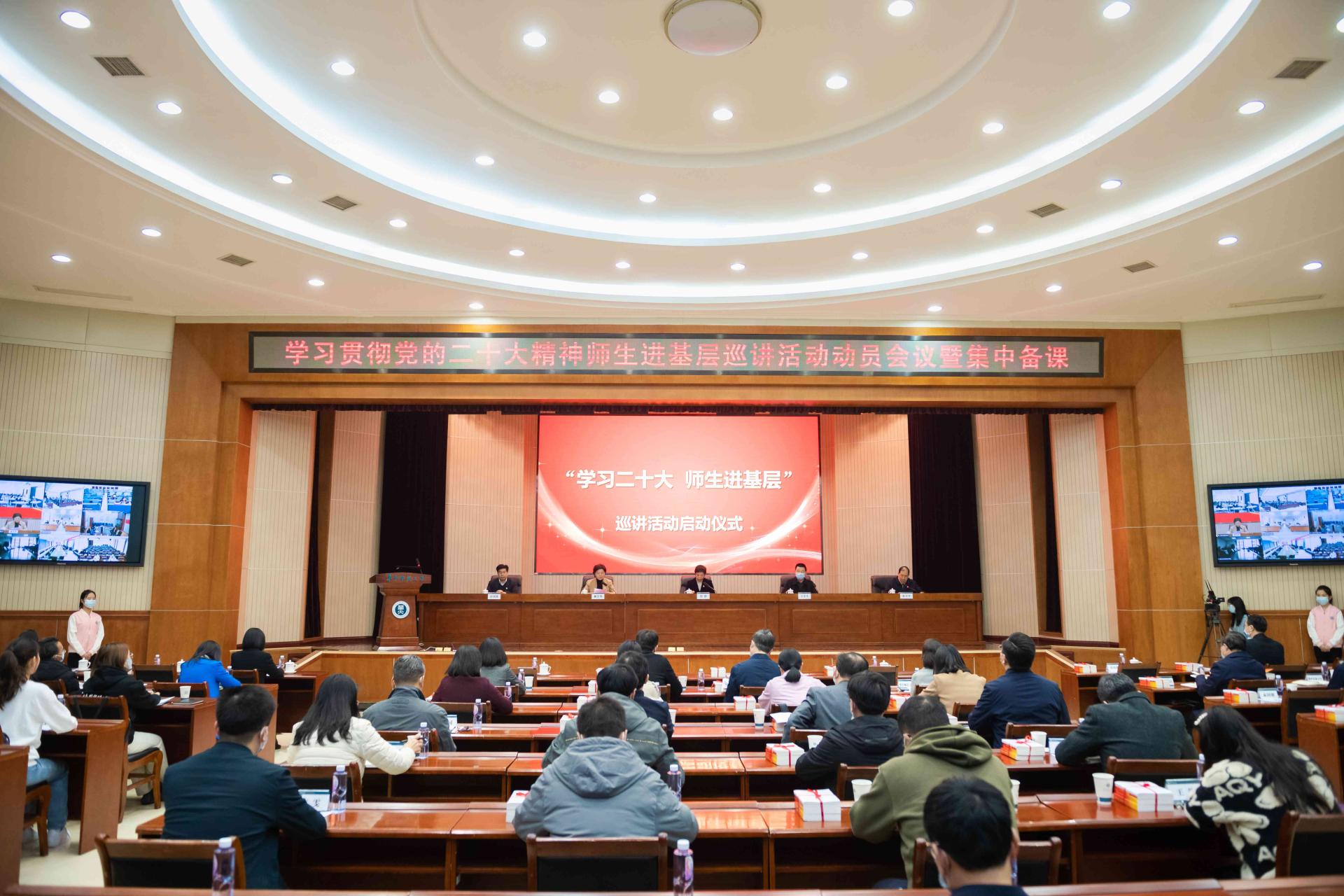 华大在线讯(记者 张严溢)11月23日,湖北省委教育工委、省教育厅在我校科学会堂举行学习贯彻党的二十大精神师生进基层巡讲活动动员会议暨集中备课,启动“学习二十大,师生进基层”巡讲活动。会议以线上线下相结合的方式举行,湖北省教育厅党组书记、厅长周静,湖北省委教育工委专职副书记、省教育厅党组成员张幸平,湖北省委讲师团二级巡视员王中生,校党委副书记、校长郝芳华,校党委常委、副校长彭双阶出席。会议由张幸平主持。
