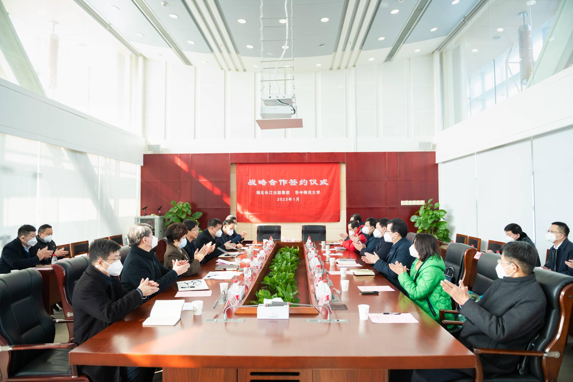 华大在线讯(记者 党波涛)1月4日,湖北长江出版集团与我校战略合作签约仪式在长江出版城举行。集团党委书记、董事长黄国斌,集团党委副书记、总裁毕华,校党委书记赵凌云、校党委副书记陈迪明出席。双方相关部门负责人参加。签约仪式由毕华主持。