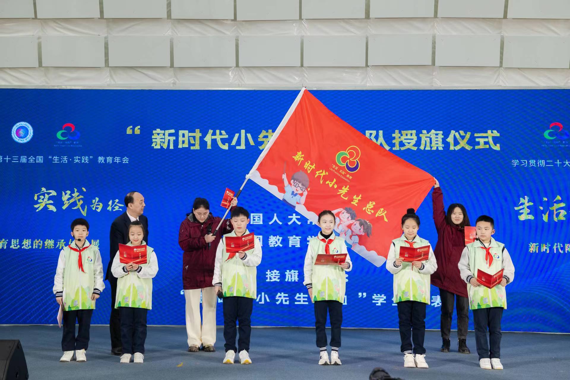 周洪宇教授为“新时代小先生”总队代表授旗