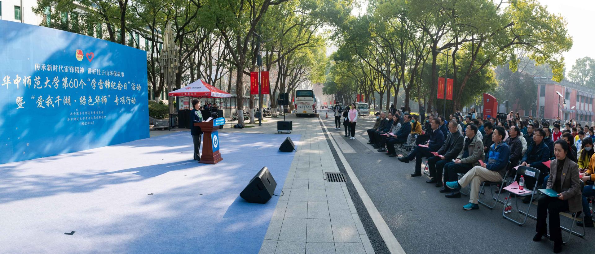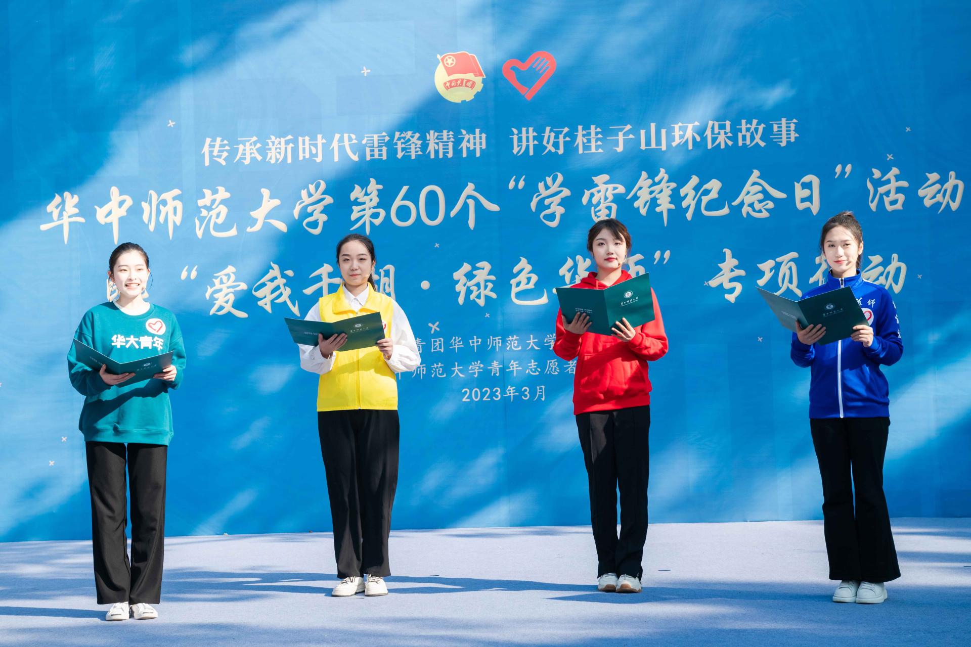 华大在线讯(记者 关国樑 见习记者 董娱辰 杜玉宇 通讯员 卢俊霖)春“锋”三月,志愿同行。3月5日,为深入贯彻落实习近平总书记关于传承和弘扬雷锋精神的重要指示,响应和落实教育部、团中央工作部署,我校第60 个“学雷锋纪念日”活动暨“爱我千湖·绿色华师”专项行动在文华公书林举行。