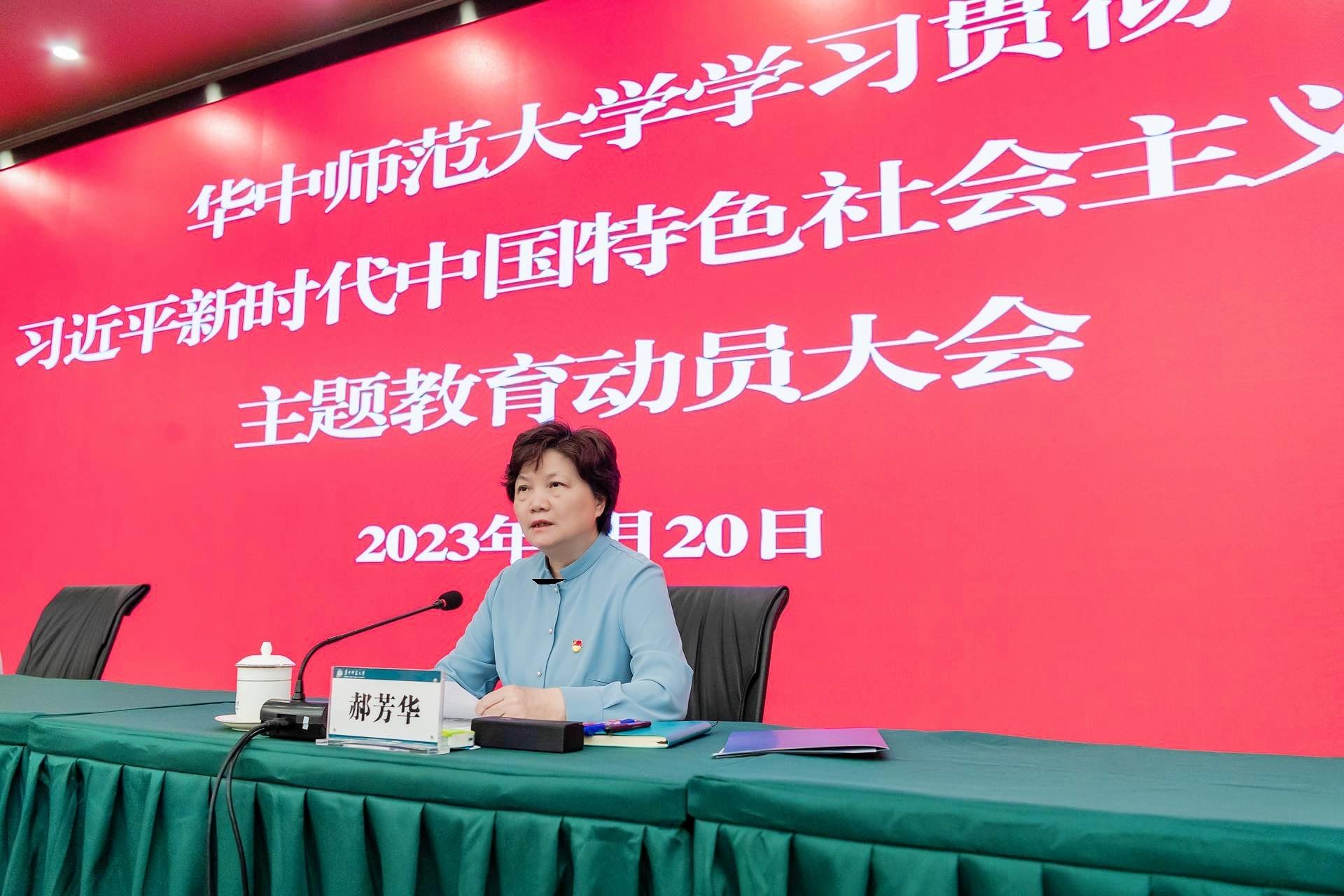 郝芳华指出,在全党深入开展学习贯彻习近平新时代中国特色社会主义思想主题教育,是以习近平同志为核心的党中央作出的重大部署,是贯彻落实党的二十大精神的重大举措,是新时代新征程全党全国人民政治生活的一件大事。全校上下要从高举旗帜紧跟核心、凝心聚力夺取中华民族伟大复兴新胜利的政治高度,从服务全面建成社会主义现代化强国、在推进和拓展中国式现代化中展现华师担当的战略维度,从坚持用思想建党、理论强党、制度治党,以高质量党建引领学校事业高质量发展的现实角度,深化思想认识,坚守初心使命,牢记“三个务必”,勇于担当尽责,切实增强开展主题教育的思想自觉、政治自觉和行动自觉。