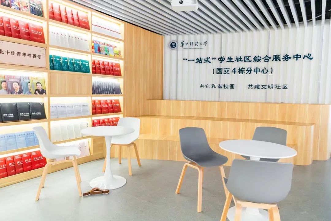 新启用的国交4栋“一站式”学生社区综合服务中心则以“国际视野提升”为建设核心,开辟了社区小讲堂、环形书廊、自由讨论空间和党团活动空间。学生可在社区广泛开展研学、研讨、组会、党团活动及微讲座、微课堂等。