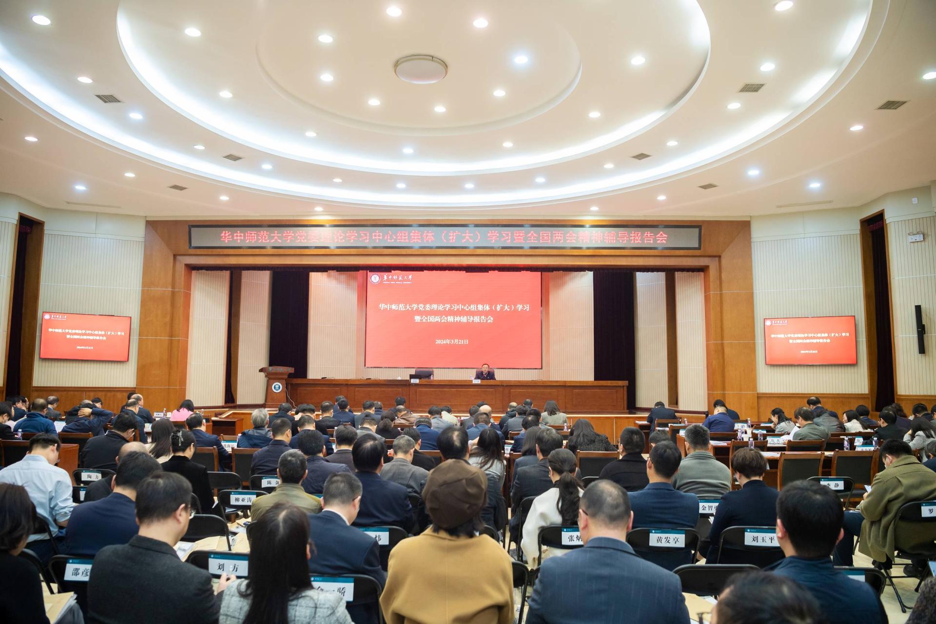 华大在线讯(记者 华轩)3月21日,球友会官方网站在科学会堂一楼报告厅举行校党委理论学习中心组集体(扩大)学习暨学习贯彻全国两会精神辅导报告会,深入学习贯彻2024年全国两会精神。校党委常委,全体中层干部,各级人大代表和政协委员、各民主党派基层组织和侨联负责人,各涉老组织负责人和师生代表参会。会议由校党委书记夏立新主持。