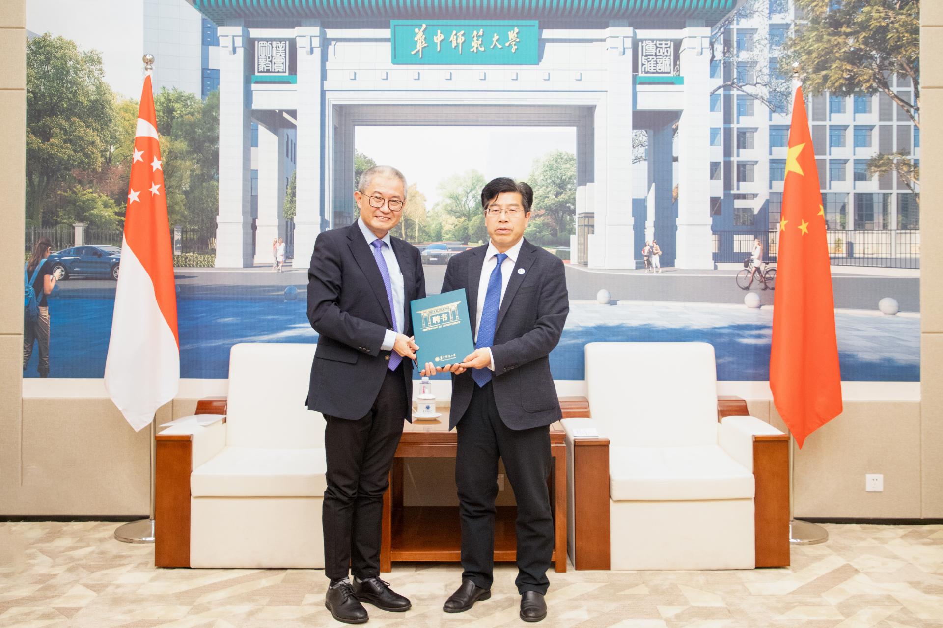 华大在线讯(通讯员 曹璐萍)4月9日,新加坡南洋理工大学常务副校长兼教务长林杉(LING San)来访并受聘为我校名誉教授。聘任仪式在校史馆一楼贵宾厅举行,校长彭双阶出席。人事部、国际合作与交流处、数学与统计学学院相关负责人参加。