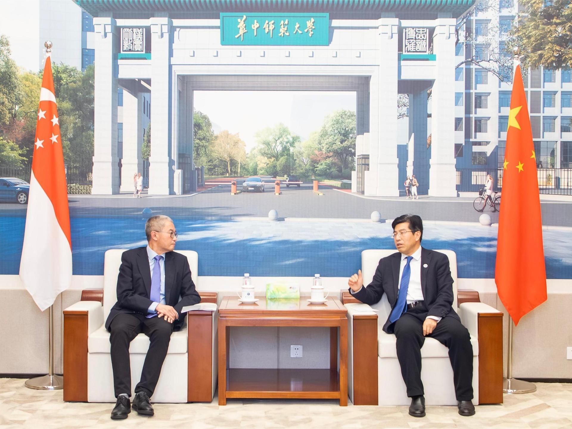 彭双阶对林杉教授来访表示欢迎,并对其专程录制视频祝贺我校120周年校庆表示衷心感谢。他在讲话中分享了学校在数字化和开放化方面的举措,介绍了我校教育数字化建设情况以及取得的成绩,希望林杉能够为我校国际化发展及数学与统计学学院的学科建设建言献策,进一步推动华师与南洋理工大学开展更多领域、更深层次的务实合作,实现共赢发展。