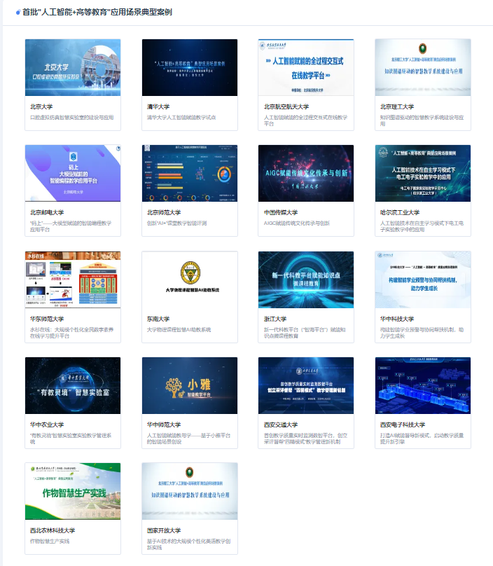 图2 首批"人工智能+高等教育"应用场景典型案例视频展示