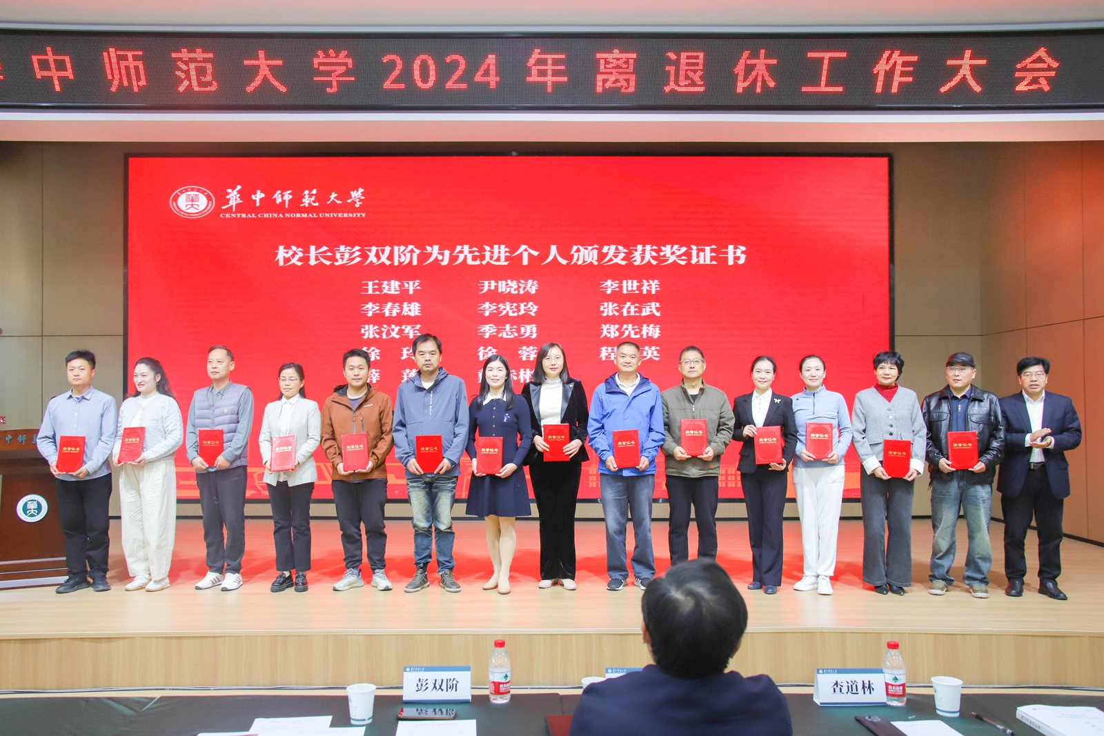 会上,彭双阶宣读表彰2021—2023年度离退休工作先进集体和先进个人的决定。夏立新和彭双阶分别为先进集体和先进个人颁发奖牌及获奖证书。