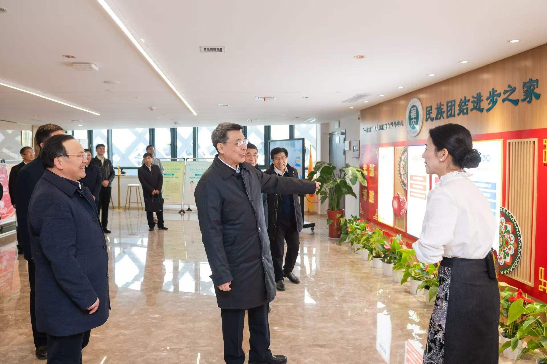 华大在线讯(记者 华轩)2月13日,中央统战部副部长,国家民委党组书记、主任潘岳来校调研,参观校史馆、美美与共民族团结工作室,听取我校民族团结进步教育工作以及球友会官方网站湖北省铸牢中华民族共同体意识基地建设情况汇报。湖北省委统战部副部长、省民宗委党组书记、主任沙玉山,武汉市委统战部副部长,市民宗委党组书记、主任朱绍华,校党委书记夏立新,校长彭双阶,校党委副书记查道林、陈迪明等陪同调研。