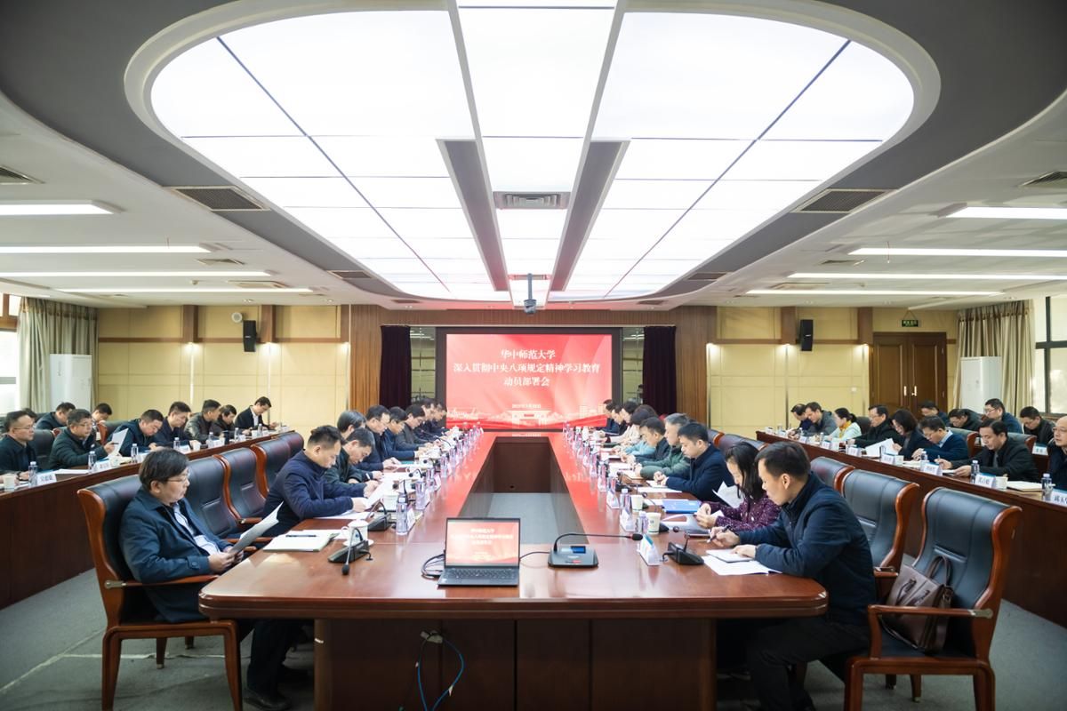 华大在线讯(通讯员 谢定一 李杰)3月18日,我校召开党建工作领导小组(扩大)会,部署深入贯彻中央八项规定精神学习教育工作。教育部直属高校党建工作联络员、中南财经政法大学原党委副书记齐文远,全体在校校领导出席会议。党建工作领导小组成员单位负责同志、相关职能部门及直附属单位主要负责人、各分党委(党总支)书记参加会议。会议由校长彭双阶主持。